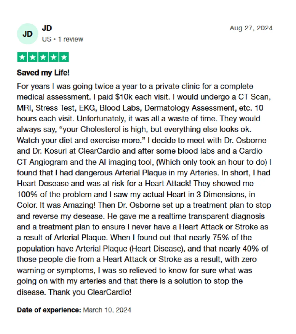 The Patient had always considered himself proactive — no symptoms, felt great, and had routine testing done through his primary care. He even had a calcium score done in 2023. It came back positive but not alarming. His doctor wasn’t concerned.